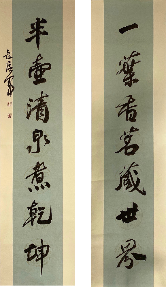 Title: "Running Script Couplets"/《行书对联》Size: 54X180cmIntroduction to the artist: Yue Guangjun, male, was born in Yuanyang County, Henan...