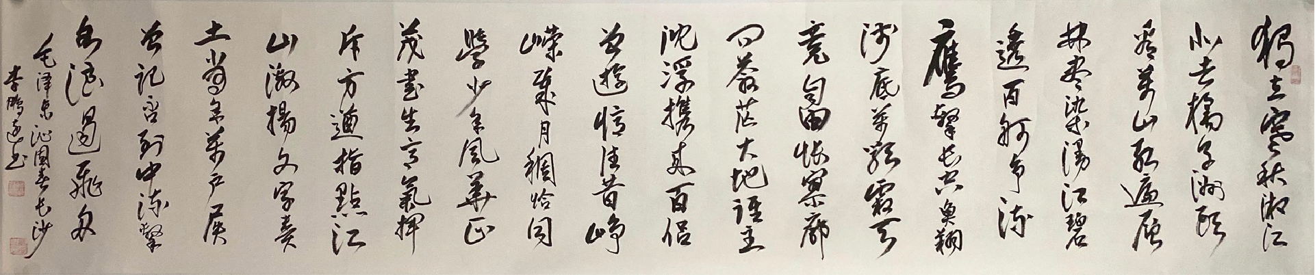 Title: 《沁园春•长沙》/"Qinyuan Spring·Changsha"Size: 64X248cmIntroduction to the artist: Li Pengyuan, courtesy name Kuangda, No. Wulongshan, born in November...