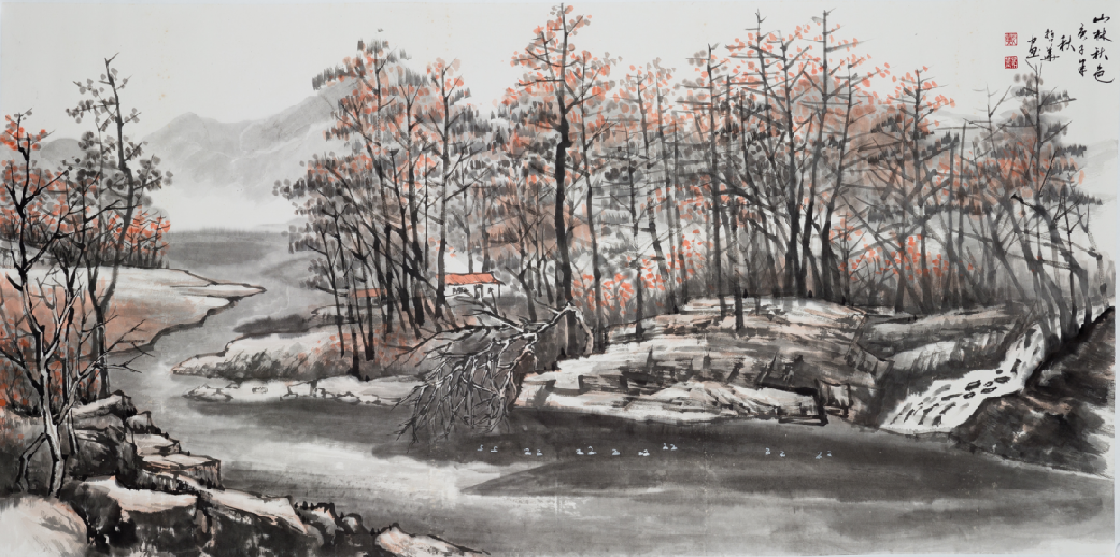 Title: "Autumn in the Mountains"Size: 68X136cmIntroduction to the artist: Dai Zhehua, pen name, Duliang Moyuan, from Wugang...