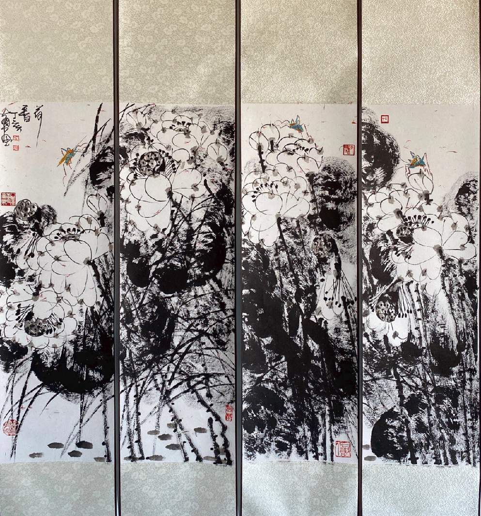 chinese painting-chinese ink painting/Lotus (22X66cm)*4
