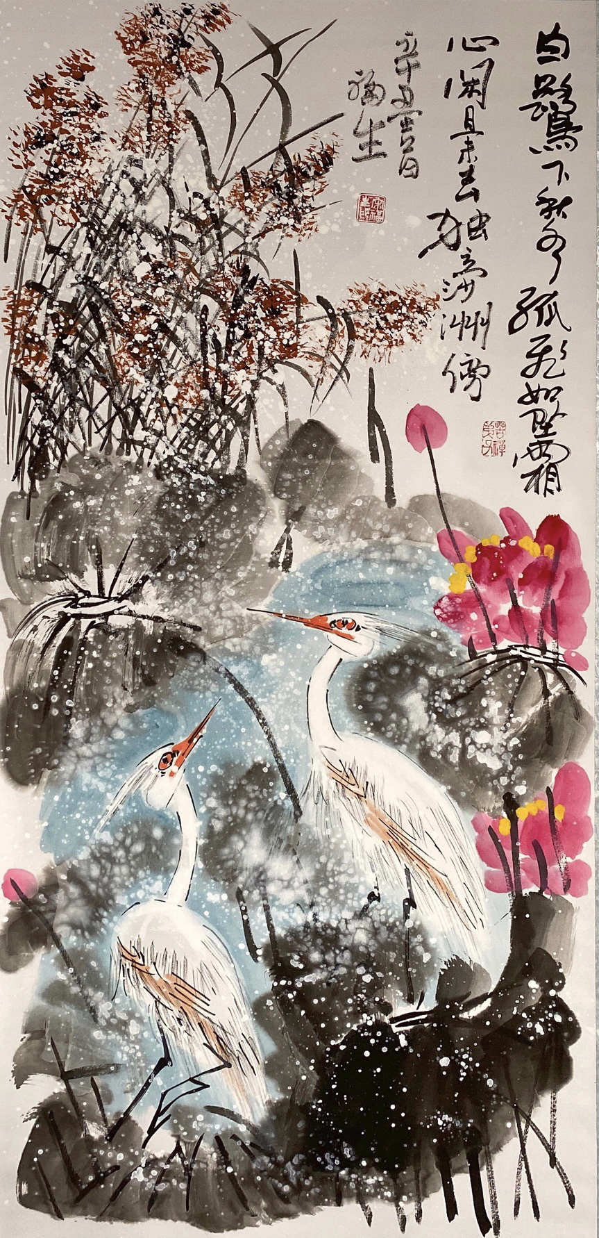 Name: 《双鹭》/"Double Heron"Size: 68X136cmAbout the author: Song Fusheng, member of China Artists Association, national first-class artist, enjoys...