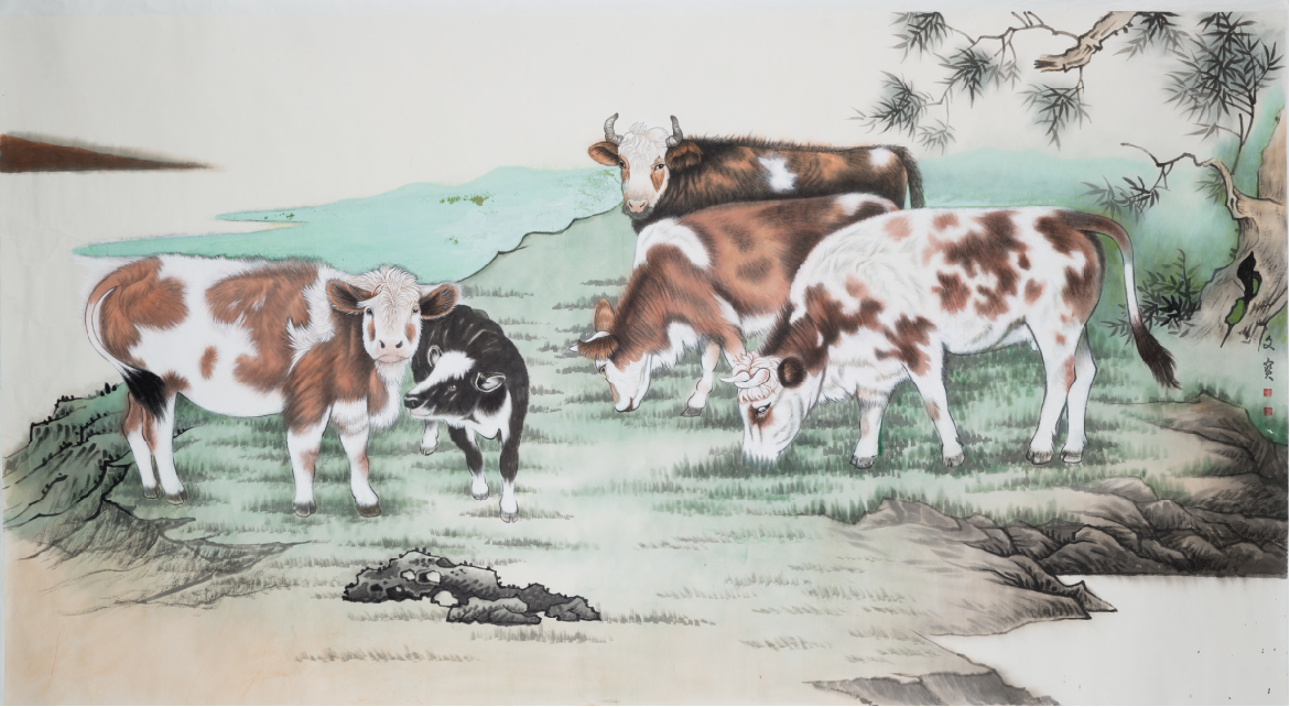 Title:《五牛图》/ "Five Bulls"Size: 97X180cmAbout the artist: Wang Wenbao, whose real name is Wang Xin, was born in...