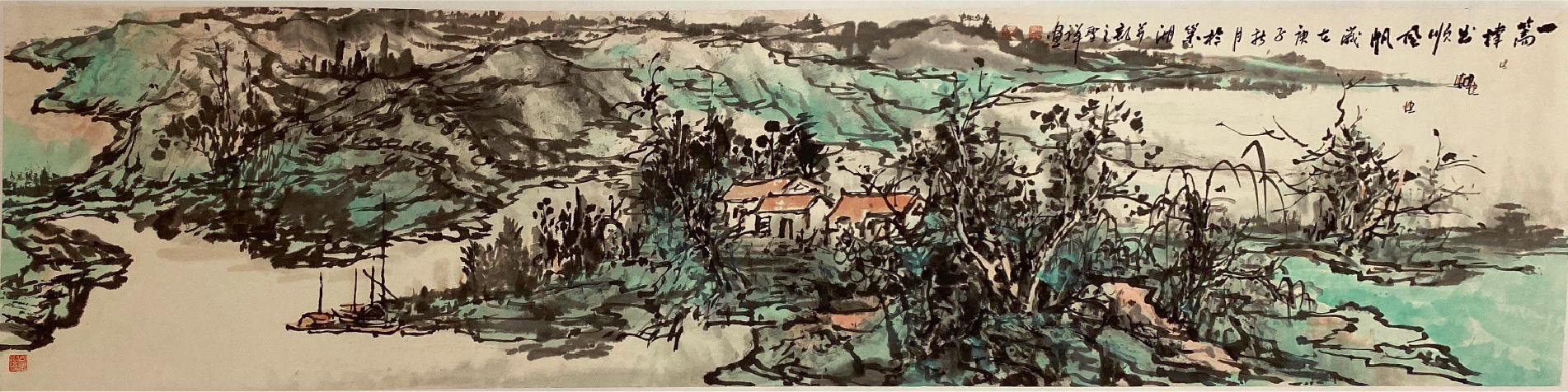 Title: 《一蒿撑出顺风帆》/"One Artemisia Holds the Sail"Size: 34X136cmArtist introduction: Zhou Shengxiang: born in Chaohu, Hefei City, Anhui Province,...