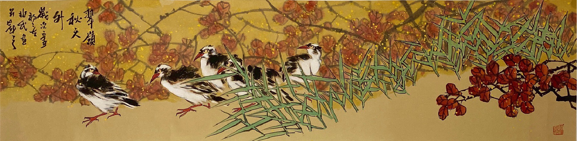 Title: 《翠岭秋天外》/"Outside the Autumn in Green Ridge"Size: 34X136cmAbout the painter: Sun Zhaowu, a native of Jinan, Shandong,...