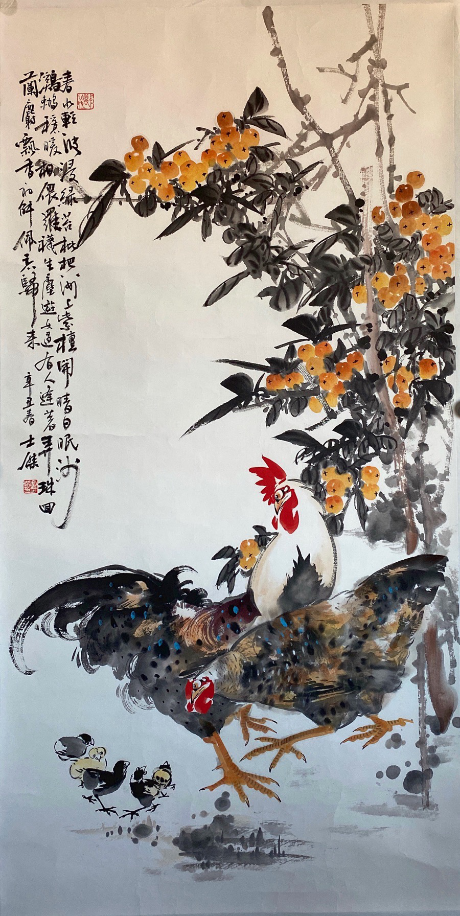 Title: 《雄鸡枇杷图》/"Picture of Rooster and Loquat"Size: 68X136cmIntroduction to the artist: Lu Shijie, male, Han nationality, painter and...