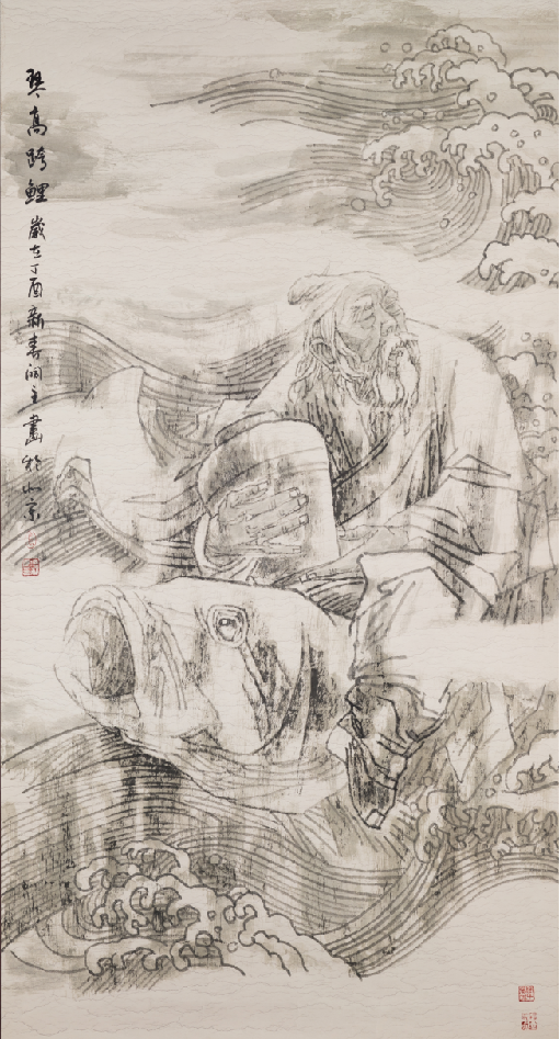 Title: "Qin Gao Crossing the Carp"Size: 97X180cmIntroduction to the artist: Zuo Defu, the master of the fairy...