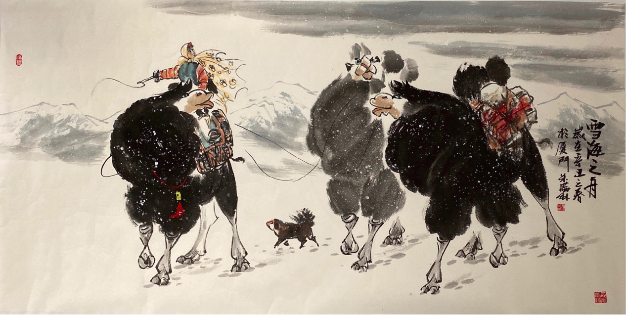 Name: 《雪海之舟》/"Snow Boat"Size: 68X136cmAbout the author: Zhu Manlin: The master of No. Tingxuexuan, Tianshan snow guest, born...