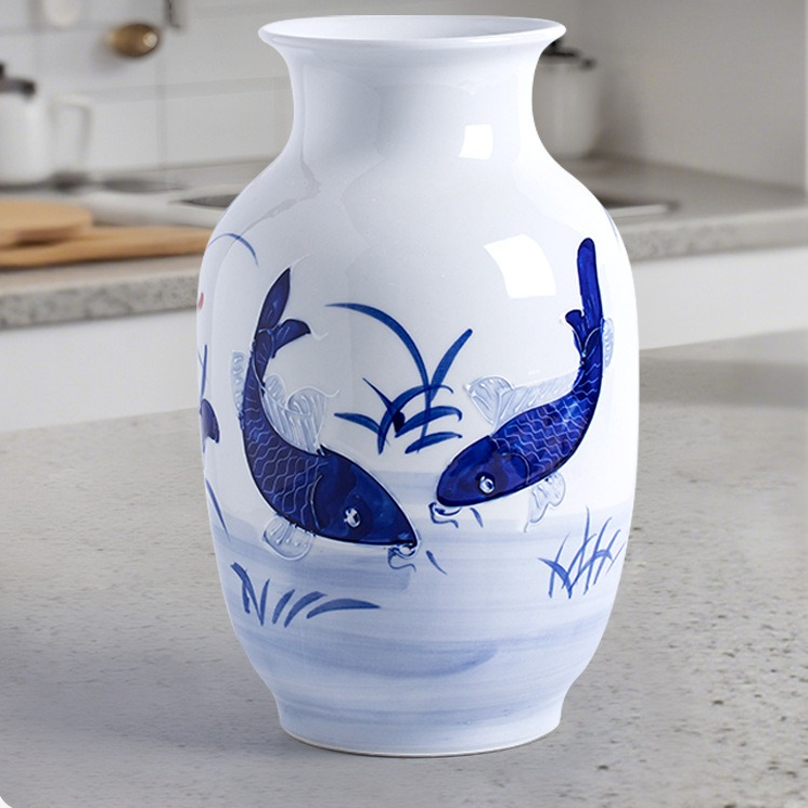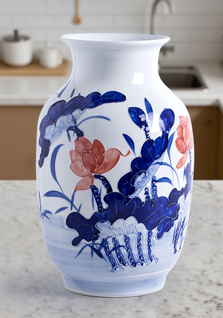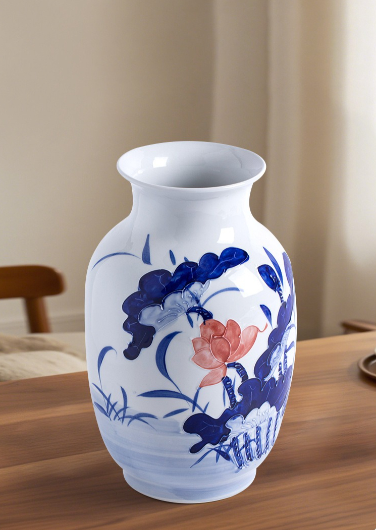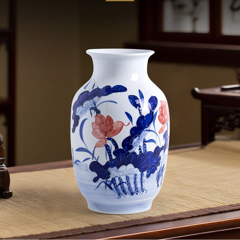 Jingdezhen ceramic crafts, hand-painted lotus vases, winter melon vase ornaments, home decoration, ornament collection