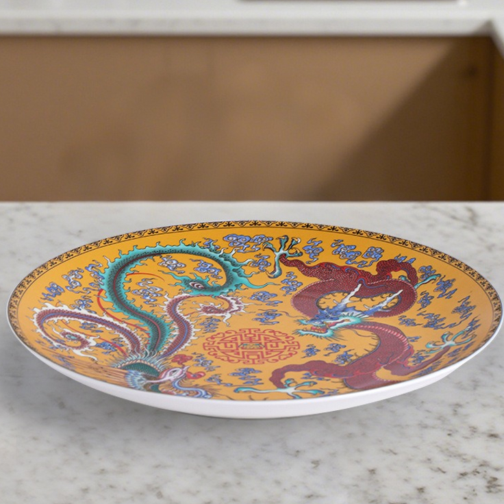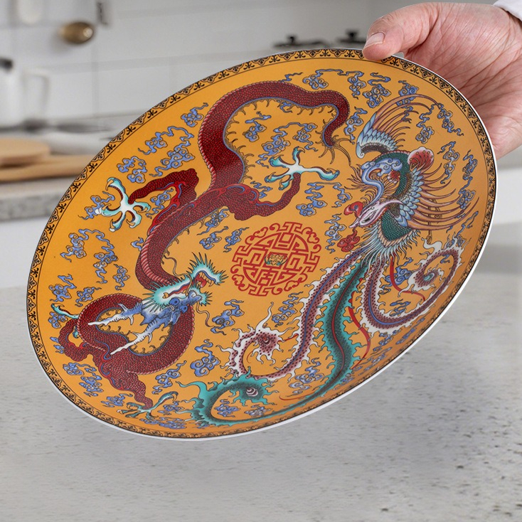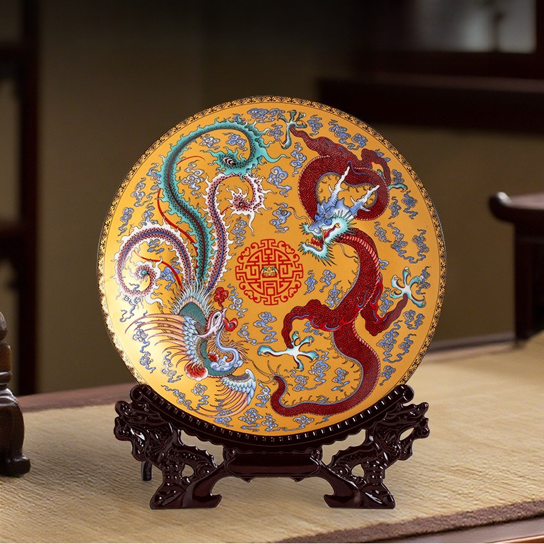 Jingdezhen ceramic decoration, luminous dragon and phoenix, home/office ornaments, 10-inch ceramic appreciation plate "Luminous Dragon and Phoenix"